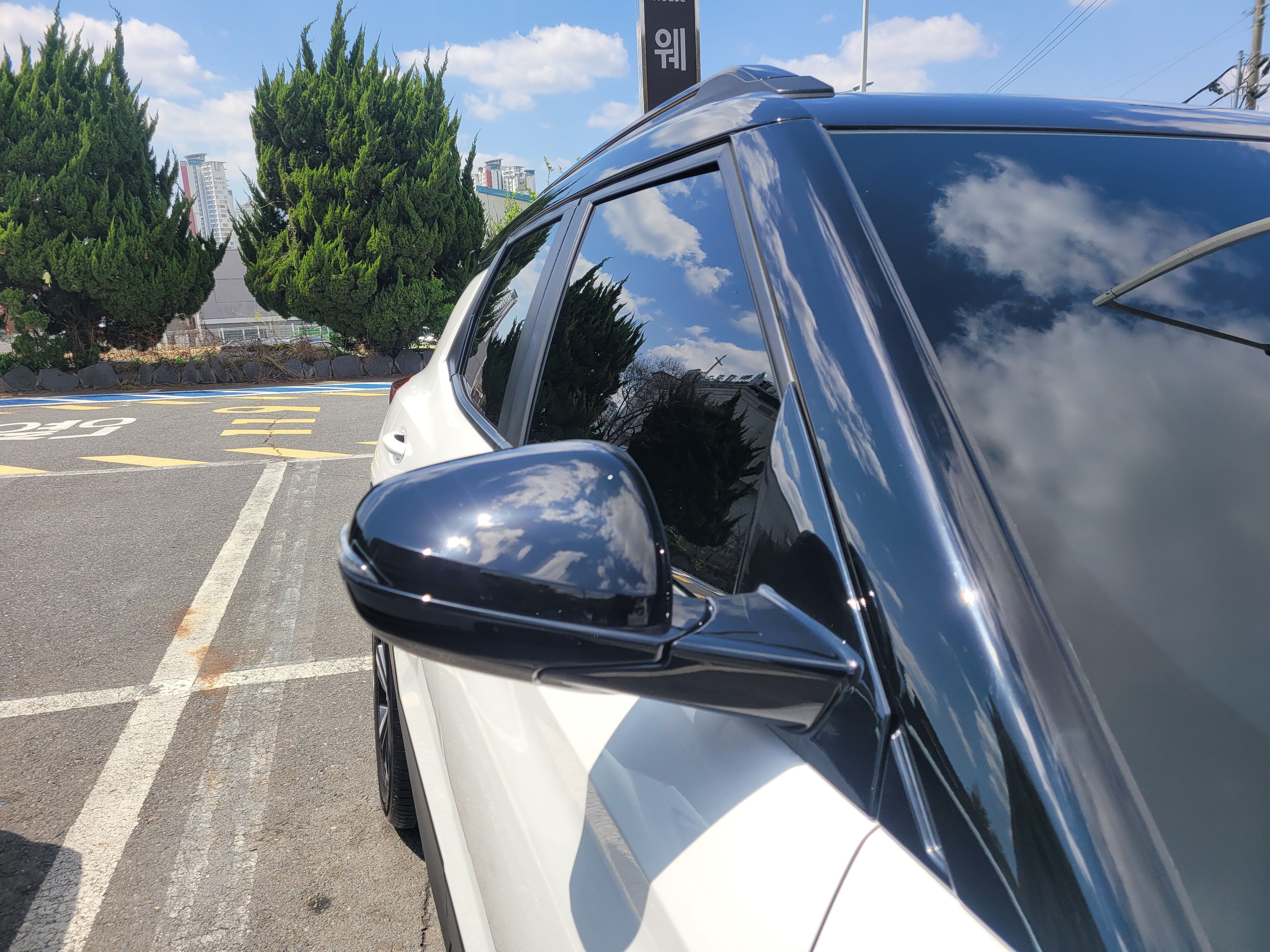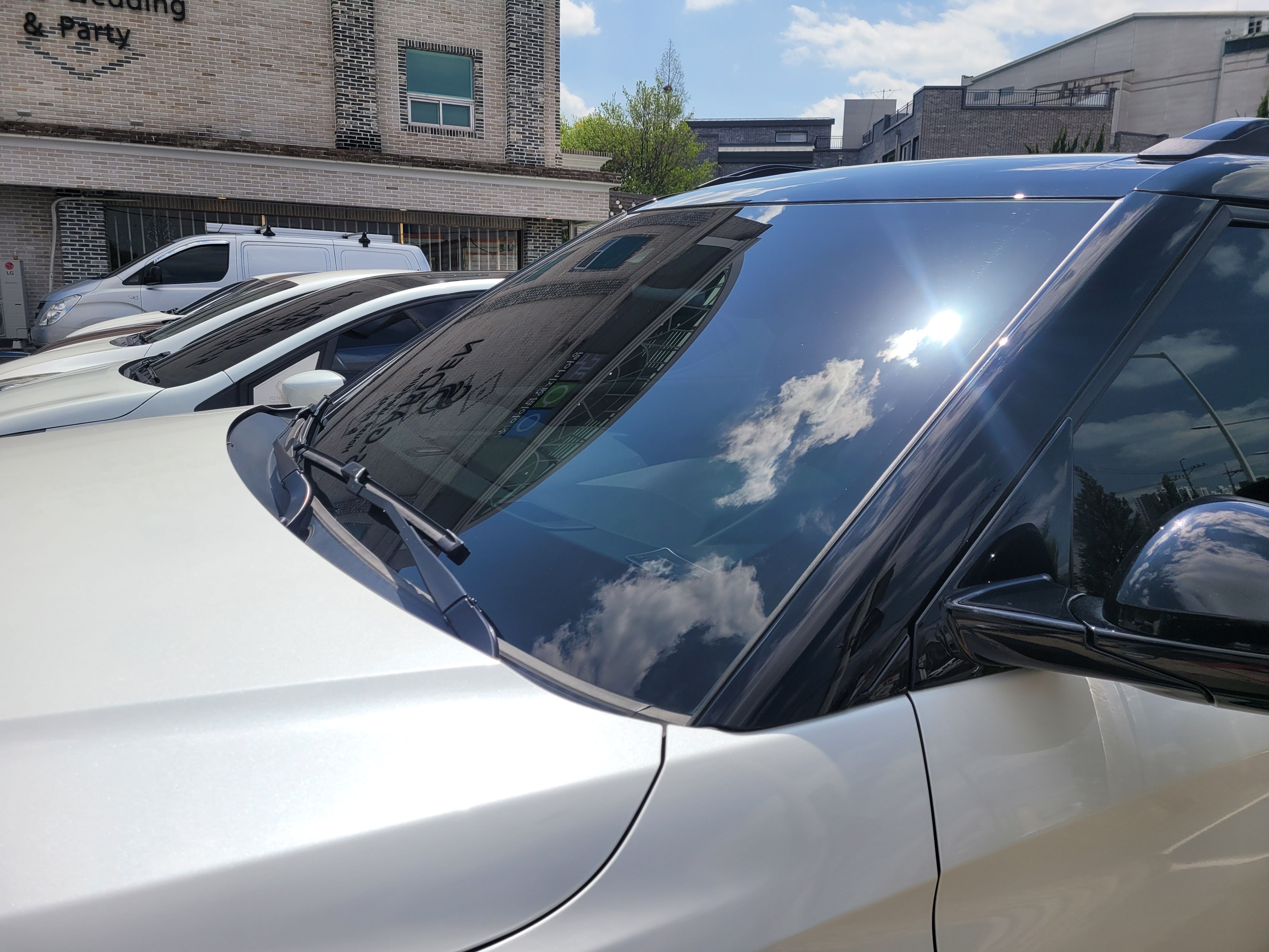 그래서 저희업체는 어떻게 해드리는게 좋을까 고민을 해보았습니다. 일단 처음오시는 손님이고 제가 해드릴 수 있는 최대치를 이렇게 설명해드렸습니다. 광택+발수코팅 20만원 자동차유리 유막제거는 100% 완벽하지는 않지만 광택을 진행하면서 유리도 함께 유막을 제거하는 과정을 포함해서 진행해드렸습니다. 그렇게 시공 후 습기가 완전히 날라간상태에서 유리발수코팅제를 살짝 한번더 얹어주는 샌스로 마무리.
