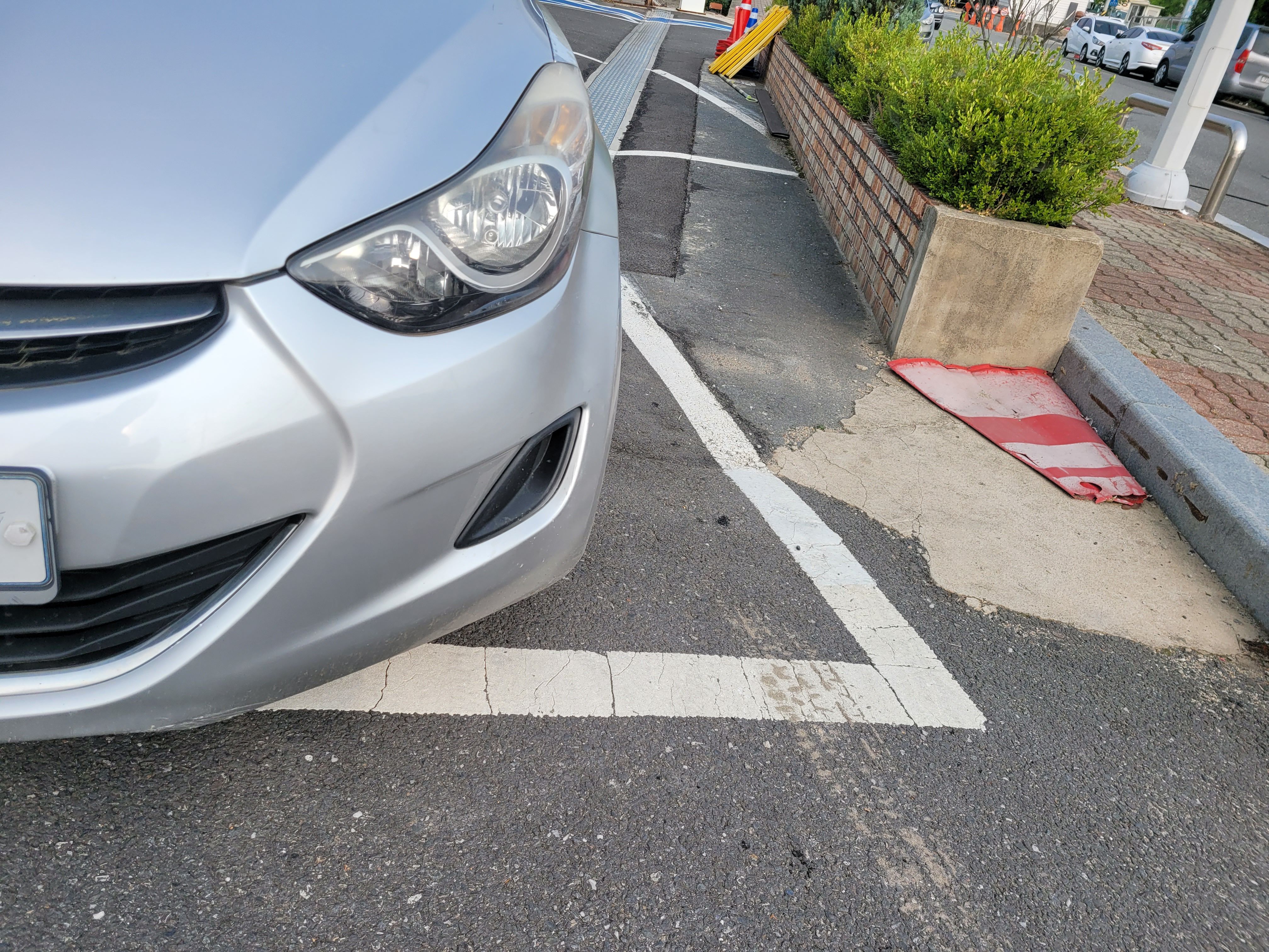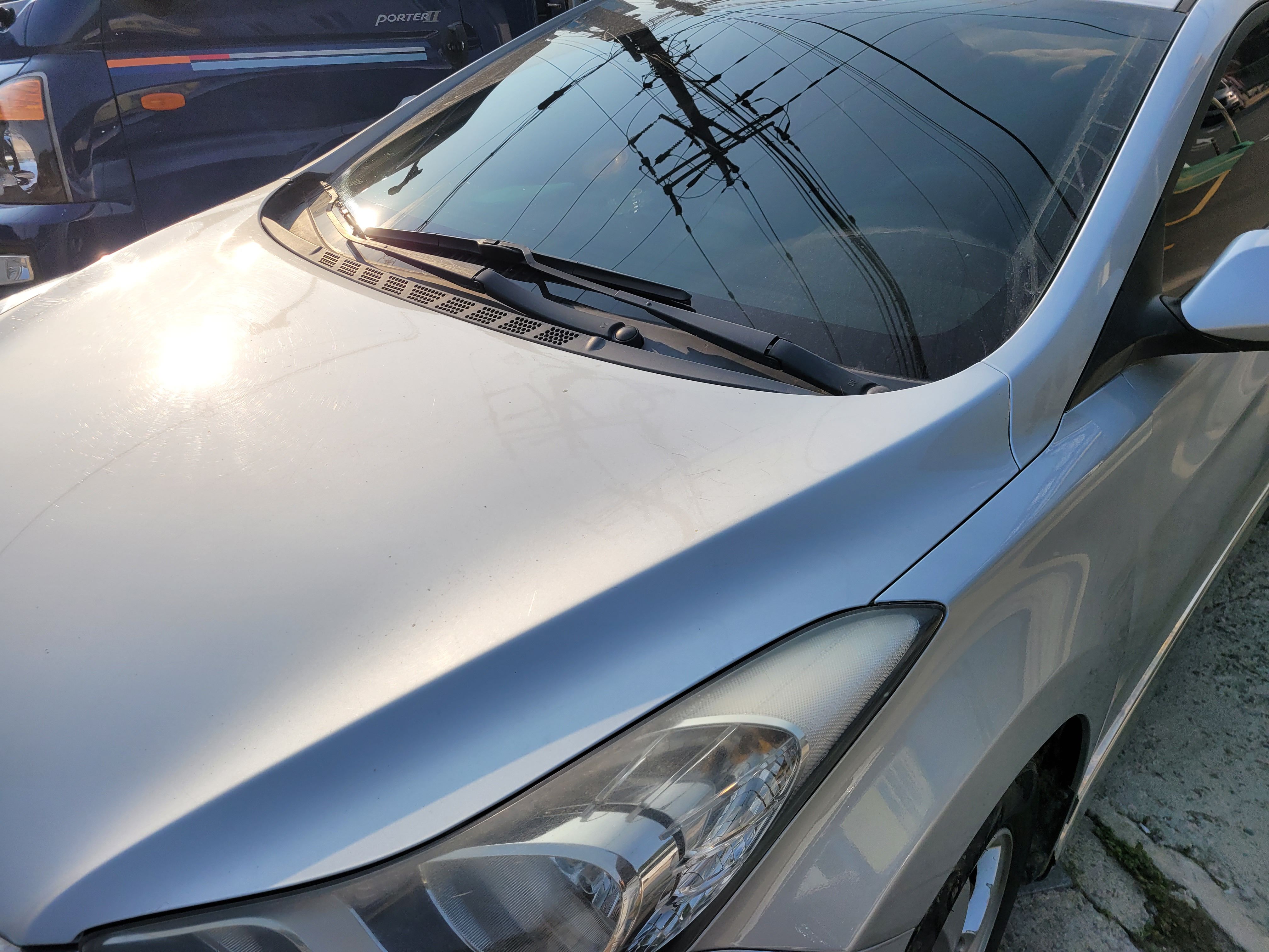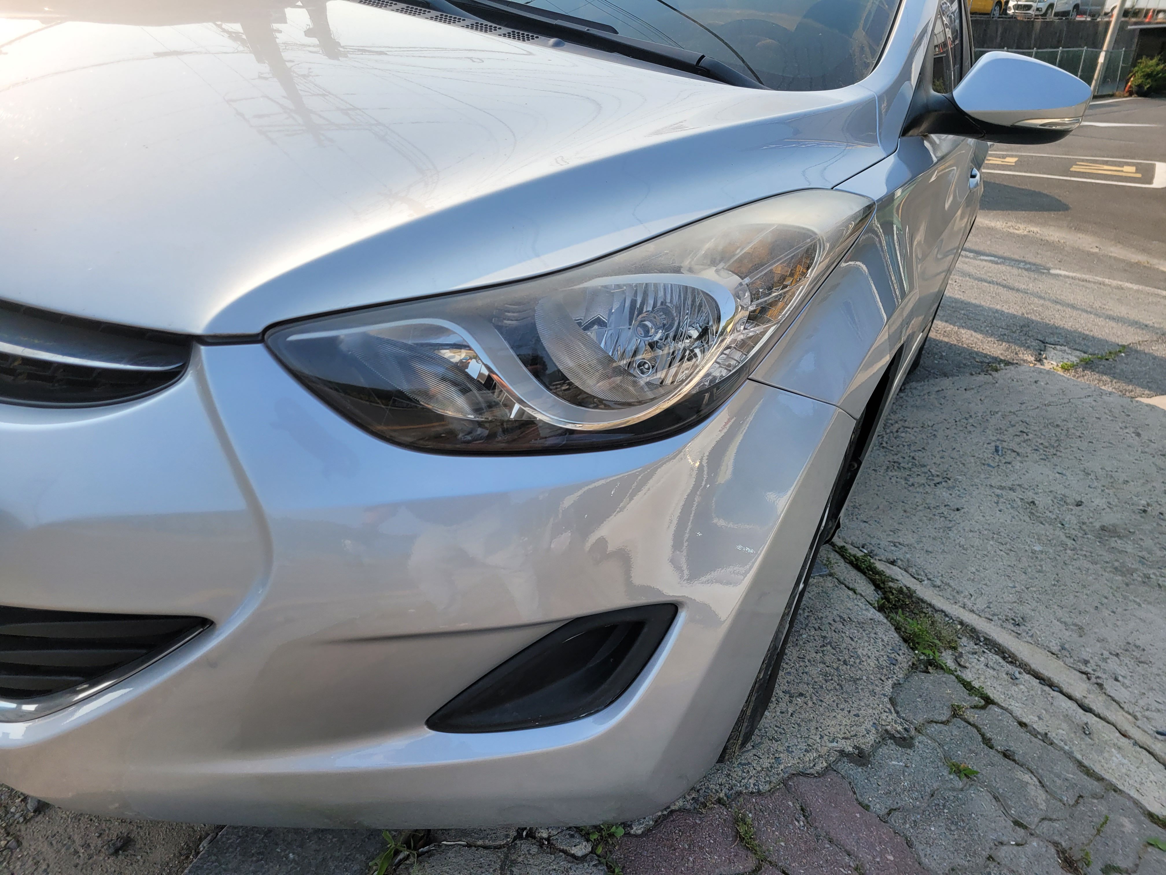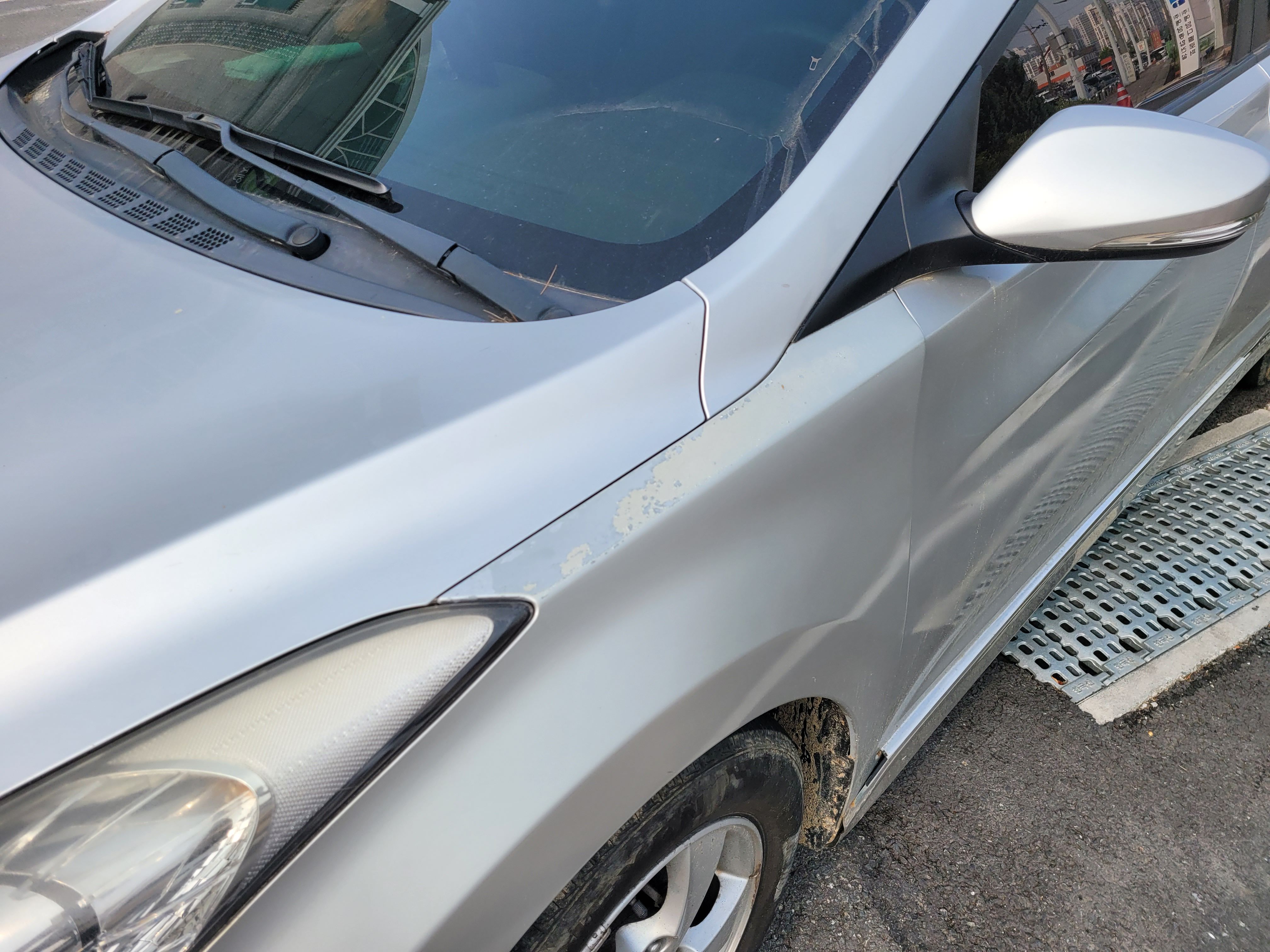 아반떼 앞범퍼 상태를 보시면 락카스프레이로 뿌려놓은게 확연하게 표시가 나는 상태입니다. 차주분께서 돈을 아끼는 방법으로 셀프 시공을 하셨는데 도저히 마음에 들지않아 직접 찾아주신 사연입니다. 제조사인 서비스센터에서는 이런경우 범퍼를 통체로 교환을해서 진행을 하게됩니다. 대략 70만원정도 선에서 가격대가 형성되어있고, 대형1급 정비공업사 역시 시간외 공임차이가 조금 있을뿐 교환을 한다면 대략 60만원선에서 가격이 형성됩니다. 업체의 특성에 따라서 가격은 더 비싸질 수 있고 그렇지 않을 수 있다는거 참고하시길 바랍니다.