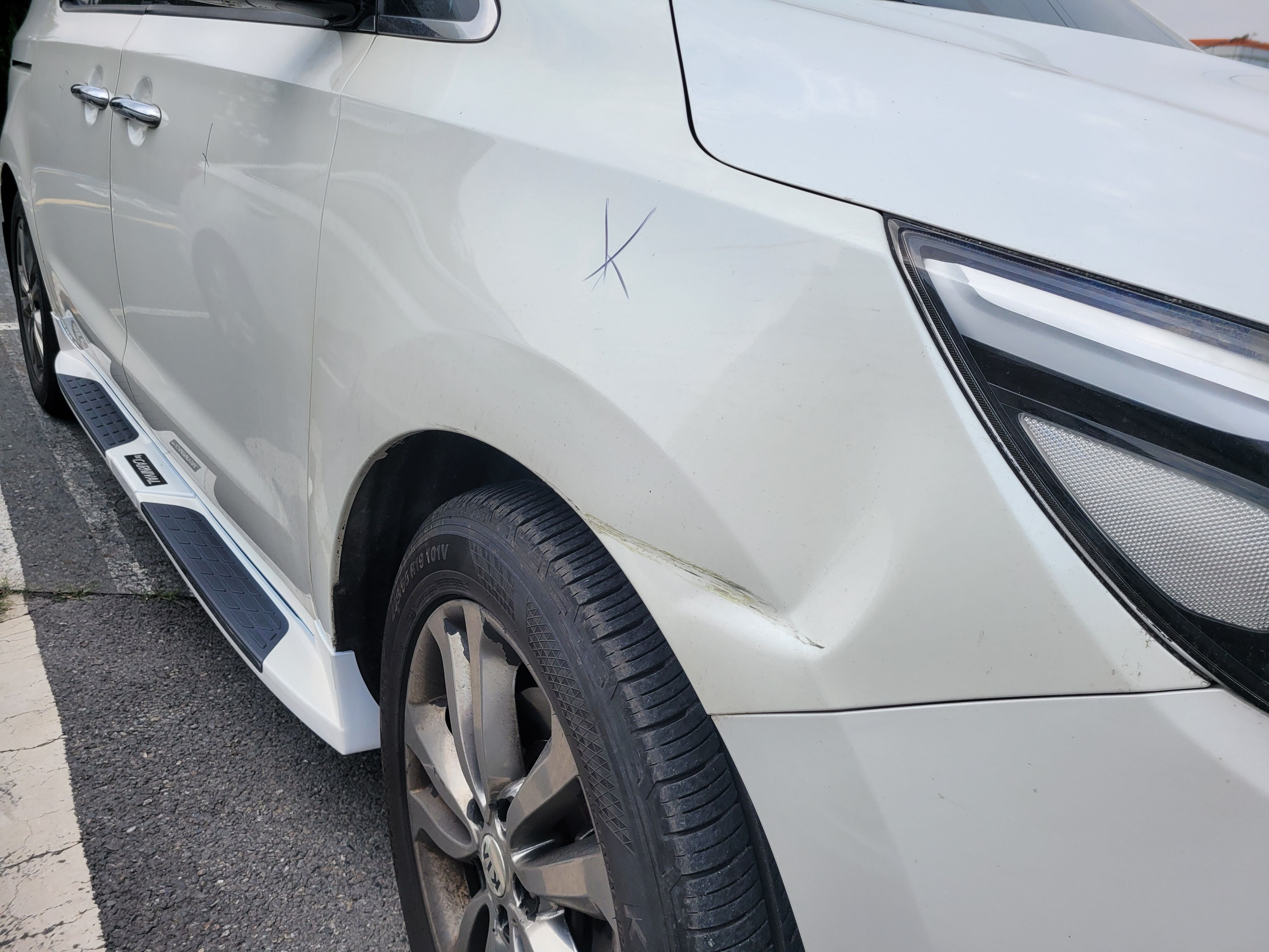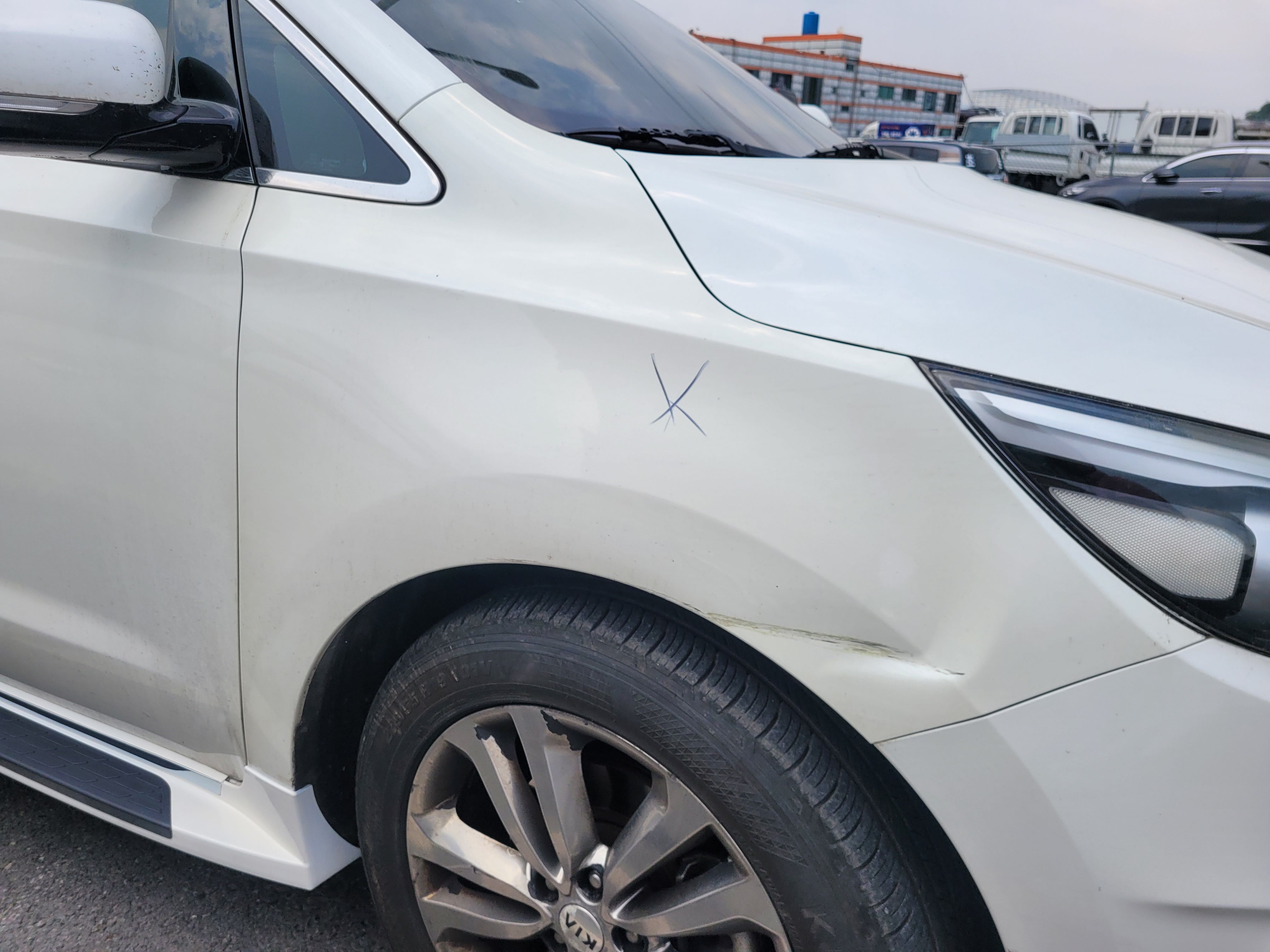 3. 조수석 앞휀다 찌그러짐과 이색감[다른도장면과 색깔차이]