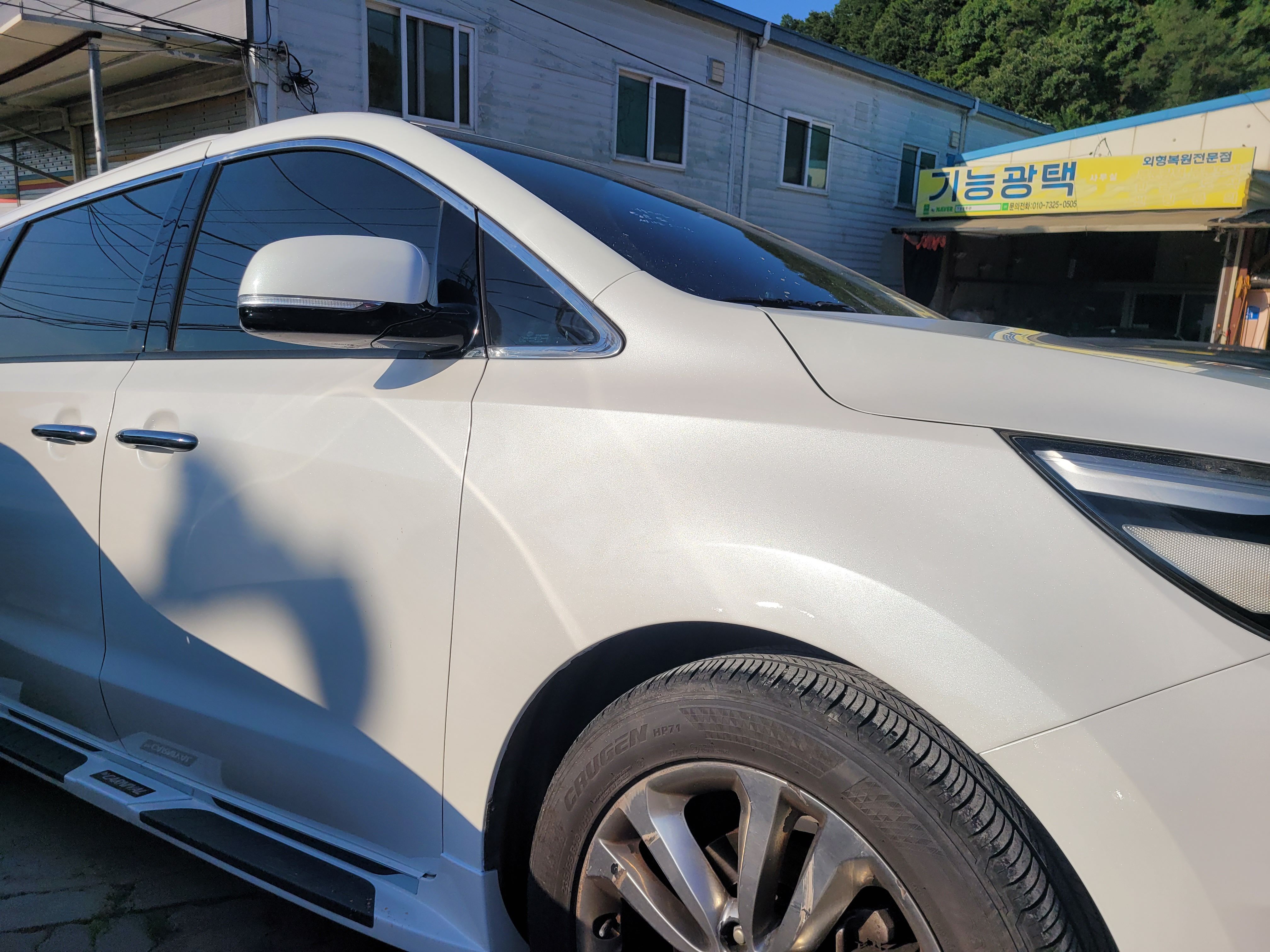 1. 화이트펄 색상의 이색감을 맞추며 판금도색으로 복원