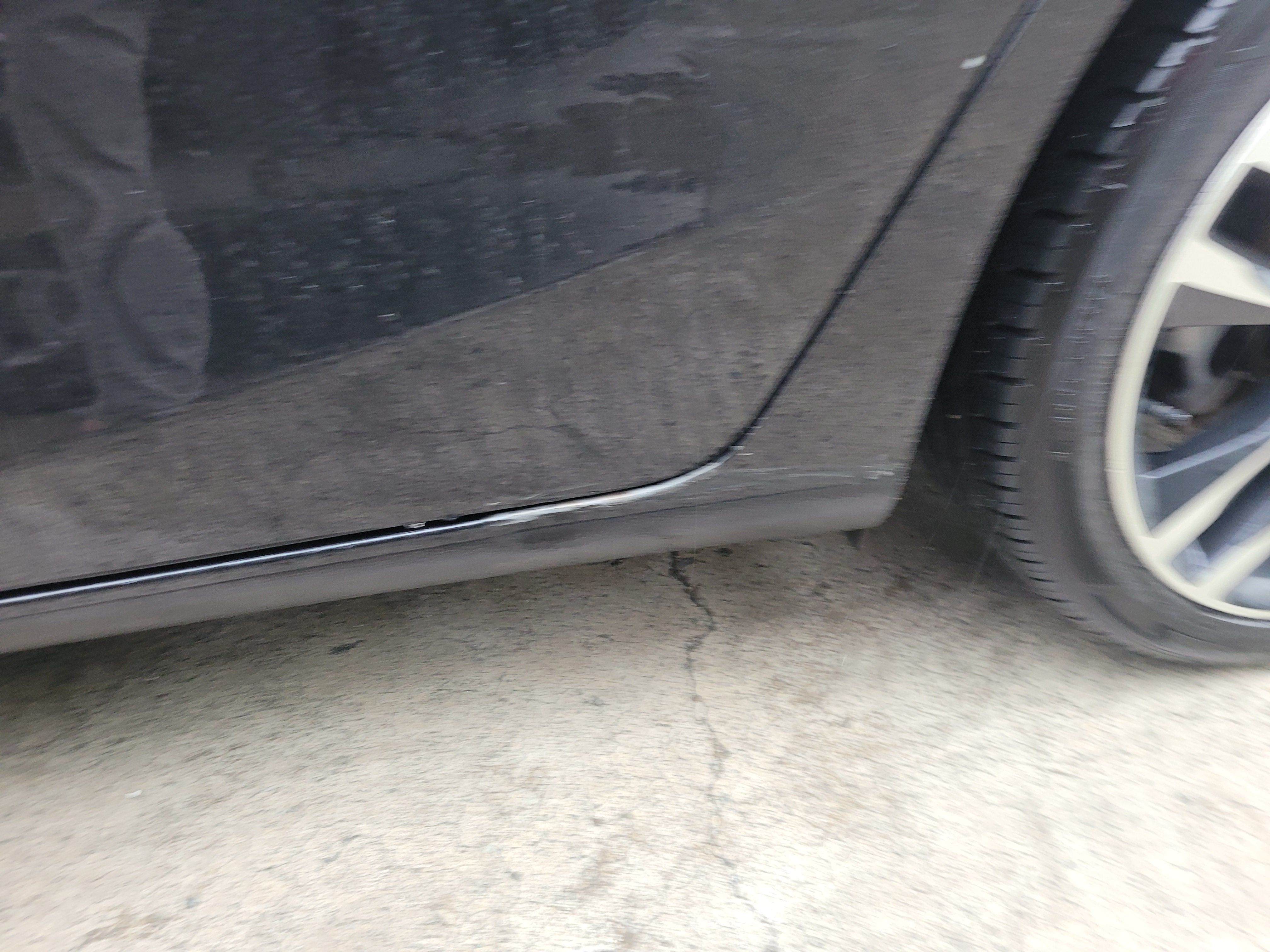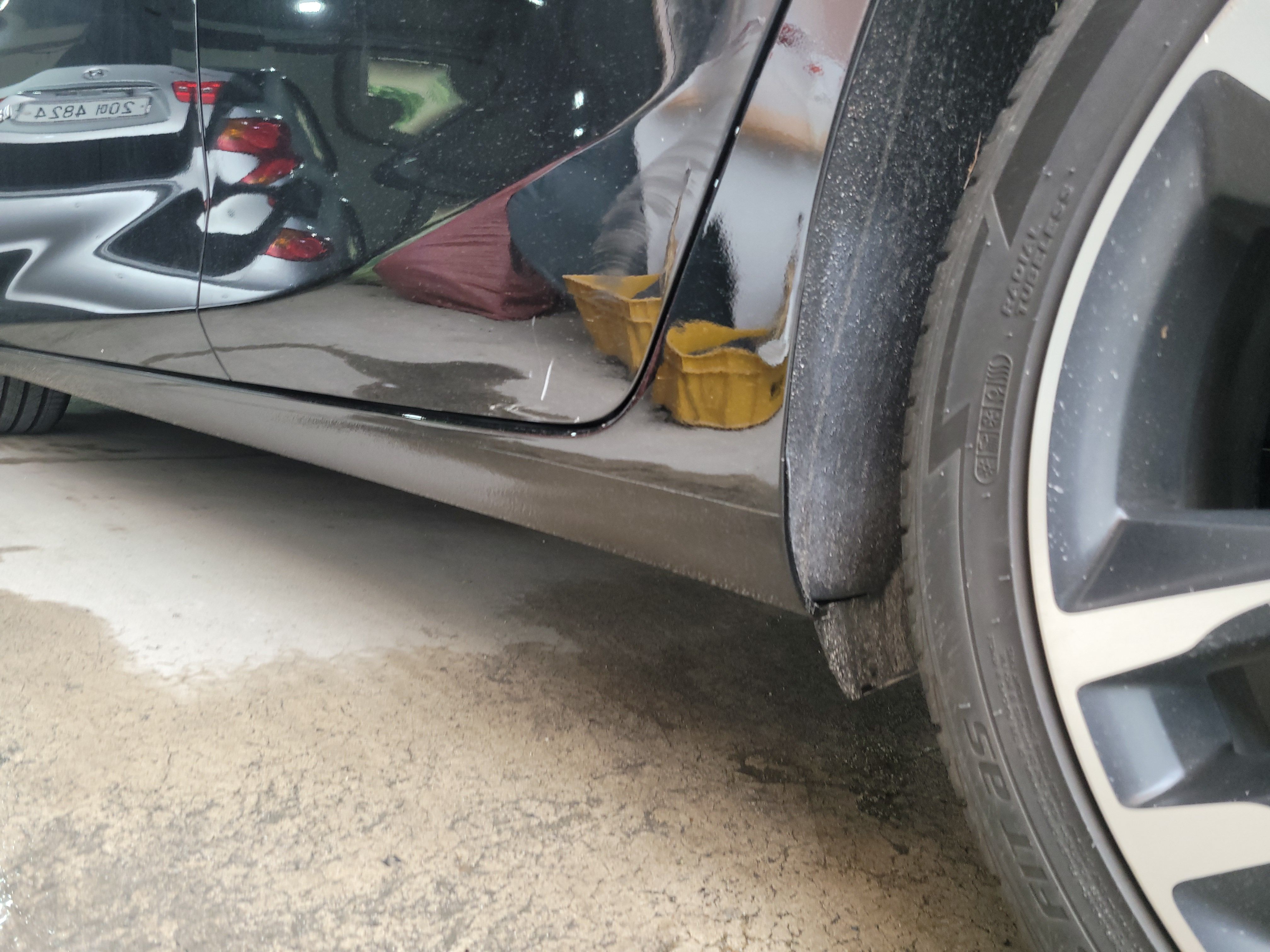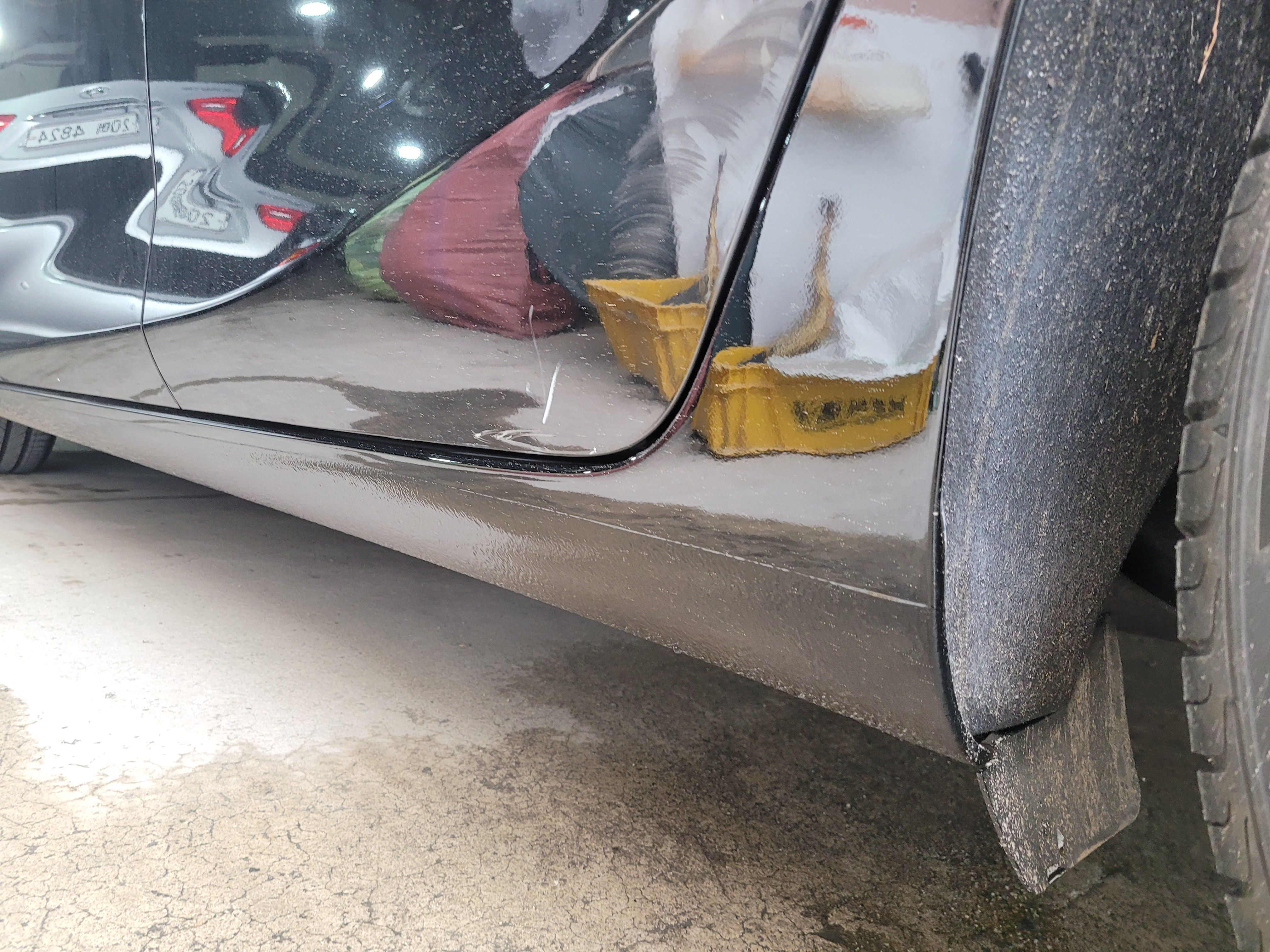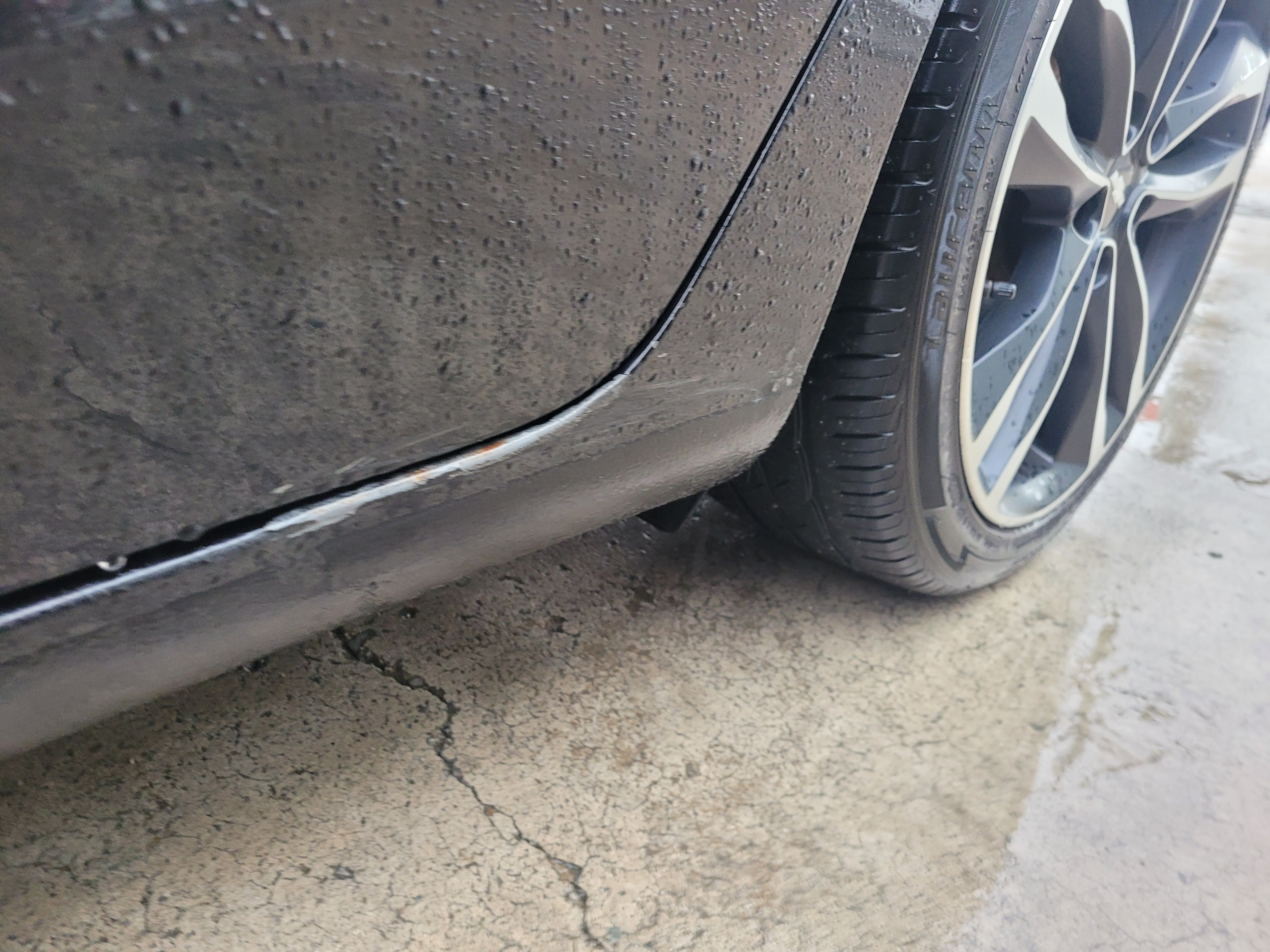 스테프몰딩 찌그러짐과 도어하단이 같이 상처가 있는 상태입니다. 이런경우 문짝을 복원한다 했을때 문짝 전체도장을 진행해야하는 상황이기때문에 차주님과의 상담에서 이 부분은 광택기로 살짝 밀어낸 후 예술적인 붓터치로 부식을 방지하는 방법으로 서비스 해드리기로 하였습니다.