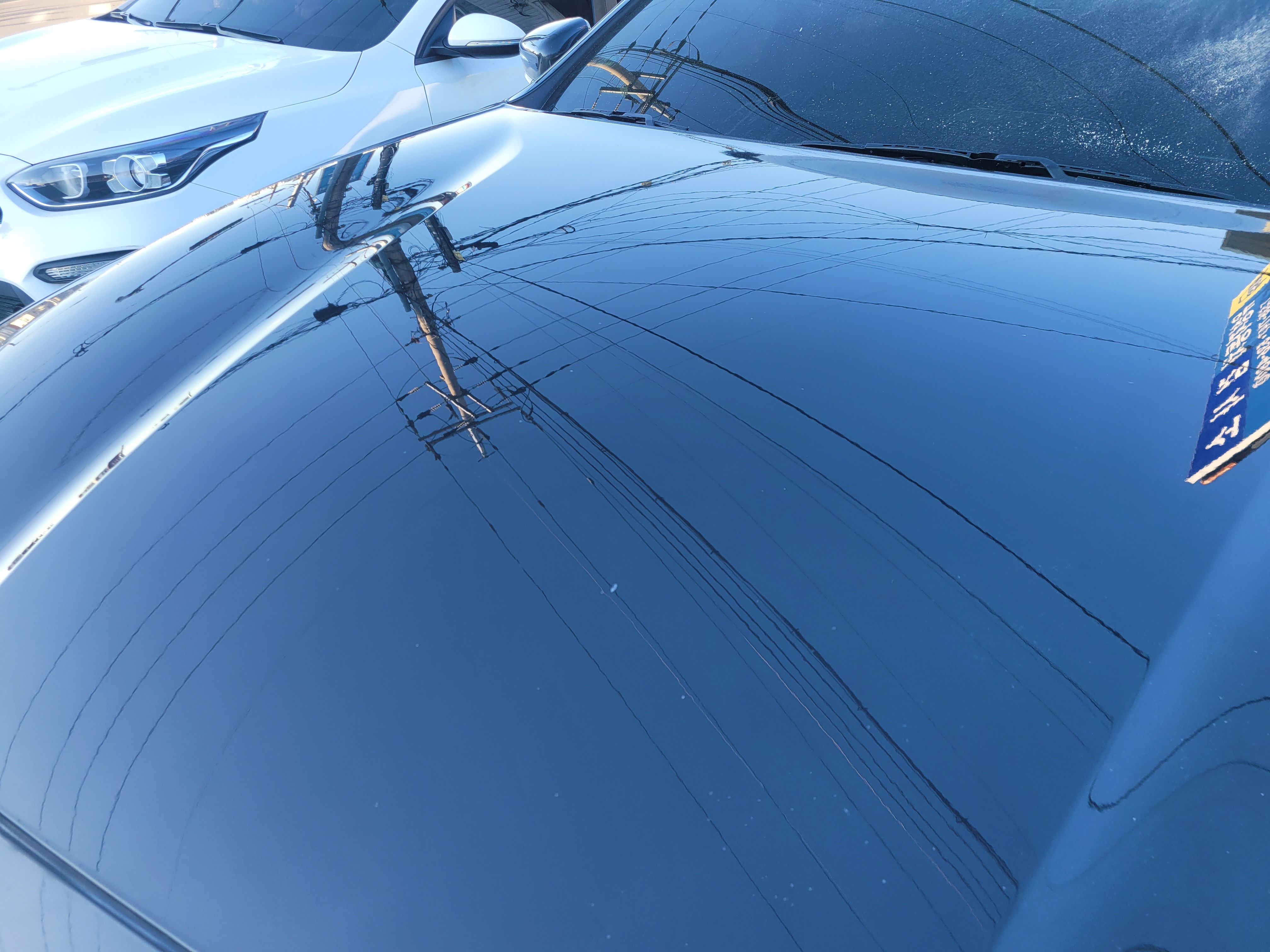 *세차 광정에서 생긴 스월마크, 빗물이나 공기중 내려앉은 미세모래알갱이들로 인해 광택이 많이 뿌옇해진 상태.
