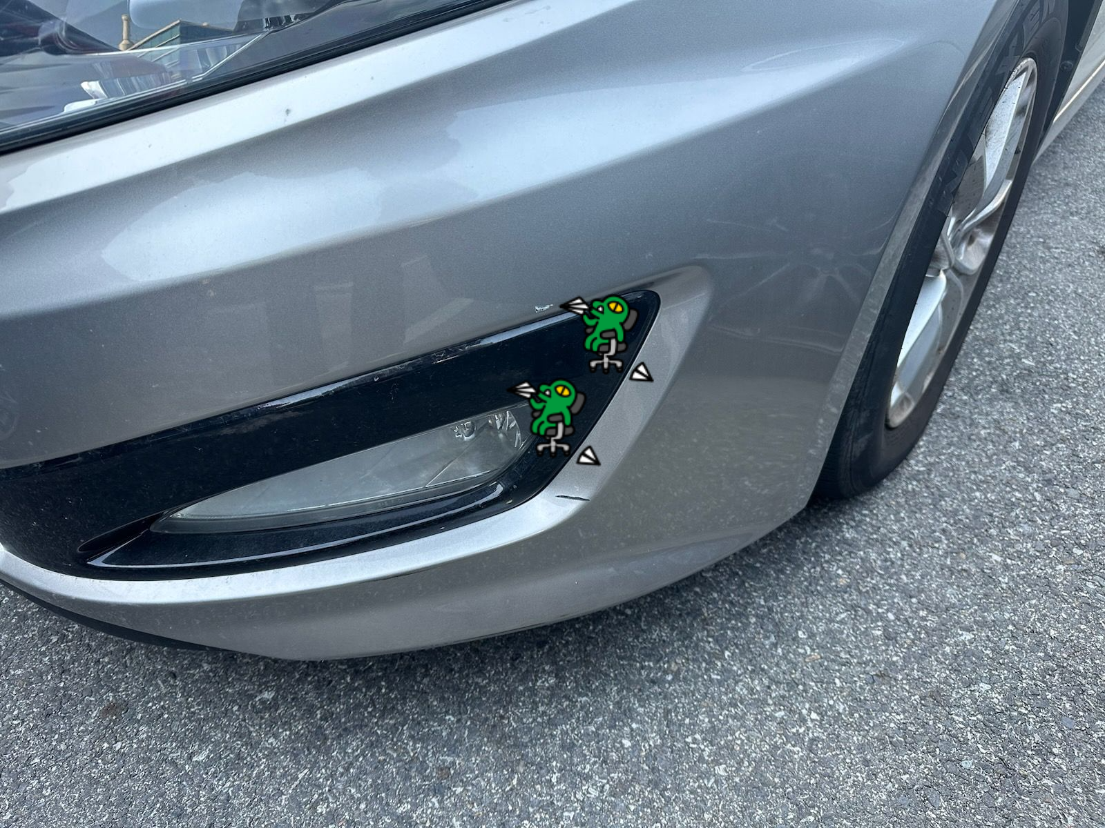 운전석 쪽으로 안개등 커버 위 아래쪽 3센티 1센티 정도의 작은 흠집들이 있는데 아무리 생각해도 범퍼를 통째로 교환하는 건 좀 아니다 생각을 하셨었답니다.