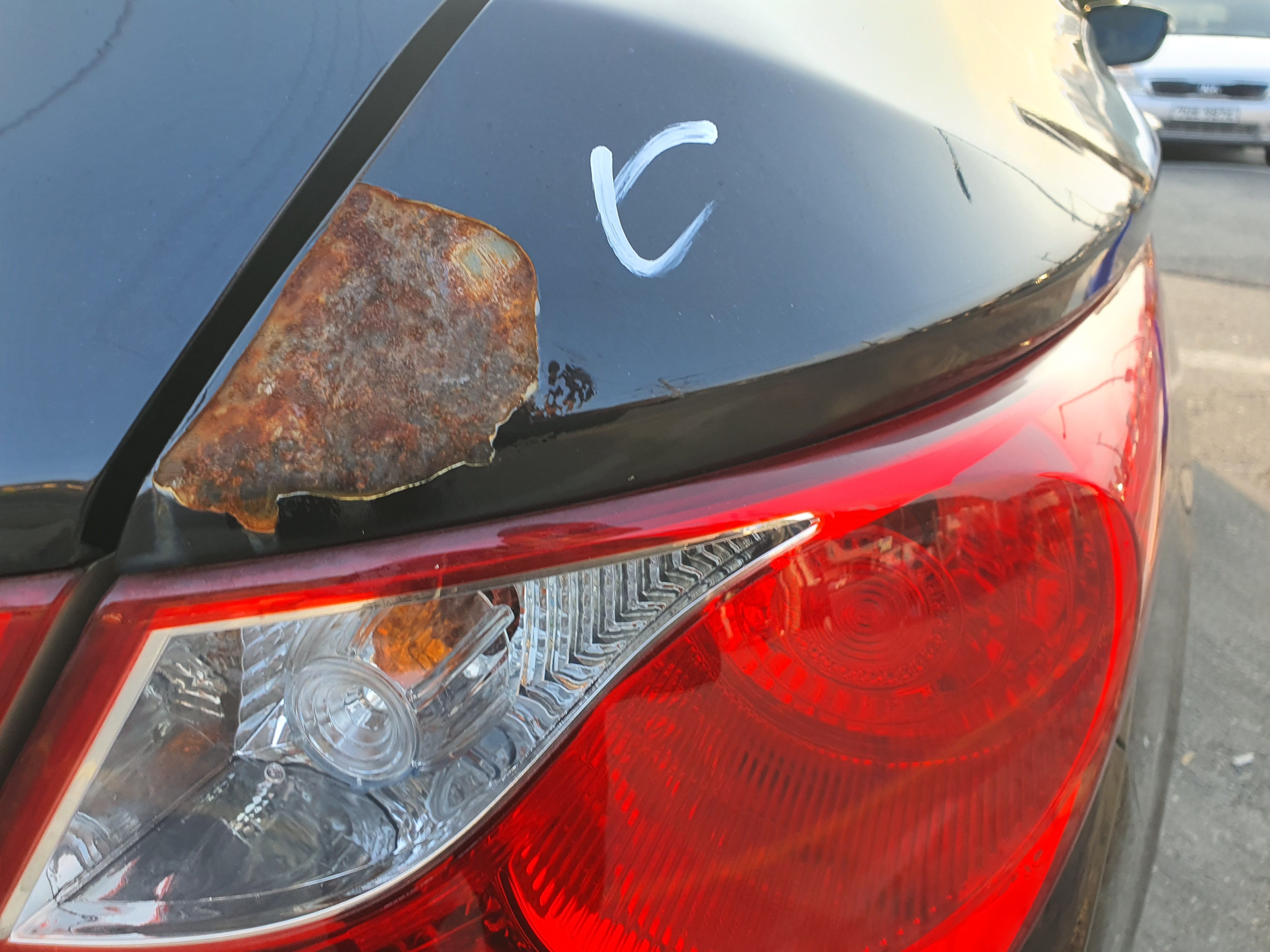 펜더 끝쪽 트렁크와 맞닿은 부분은 녹이나 있는 상태로 페인트가 떨어 저 나간 모습.