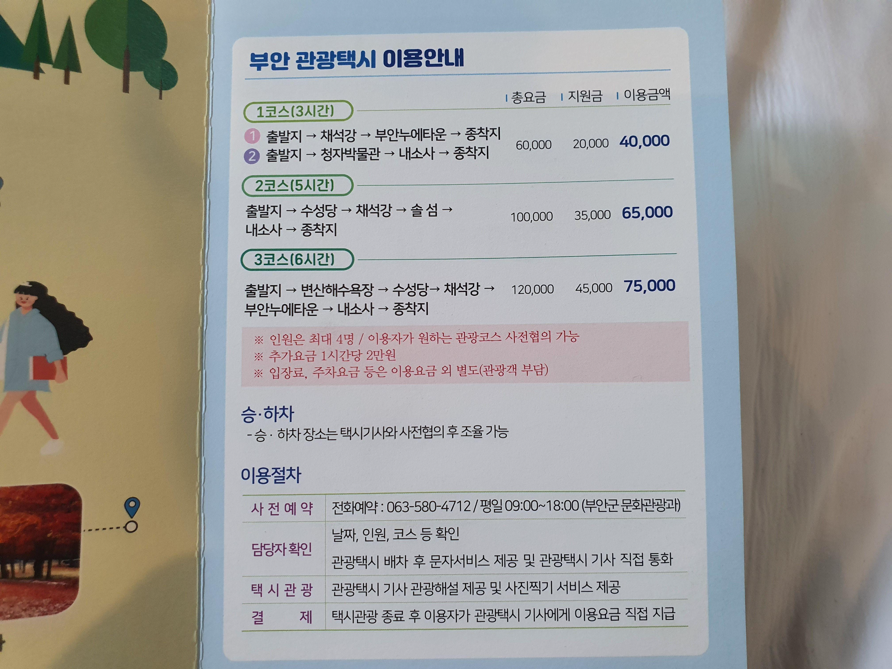특이하게 부안에는 관광택시 이용을 할 수 있습니다.