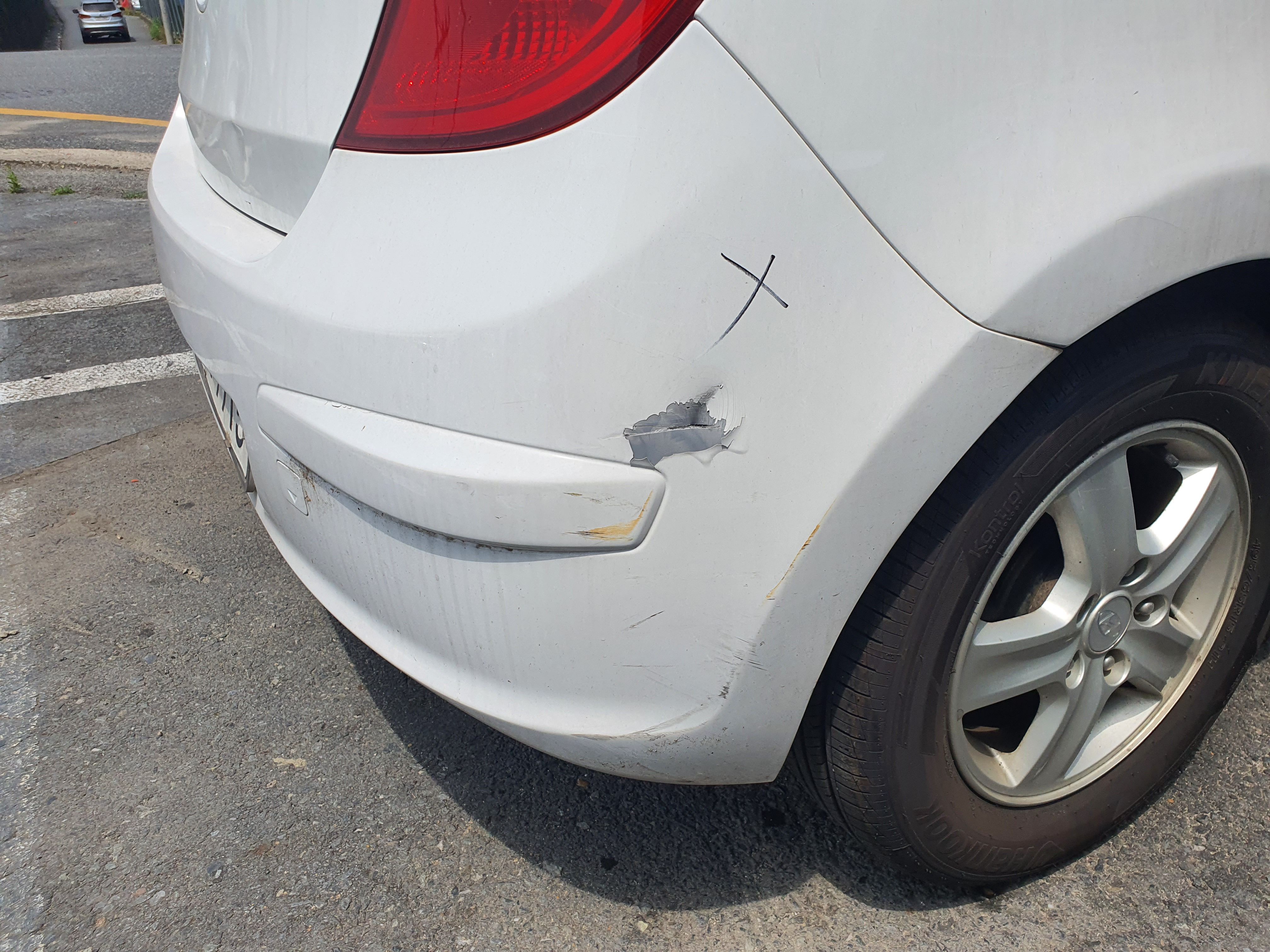 후 범퍼 깨지면서 흠집 및 미세스크래치 발생.